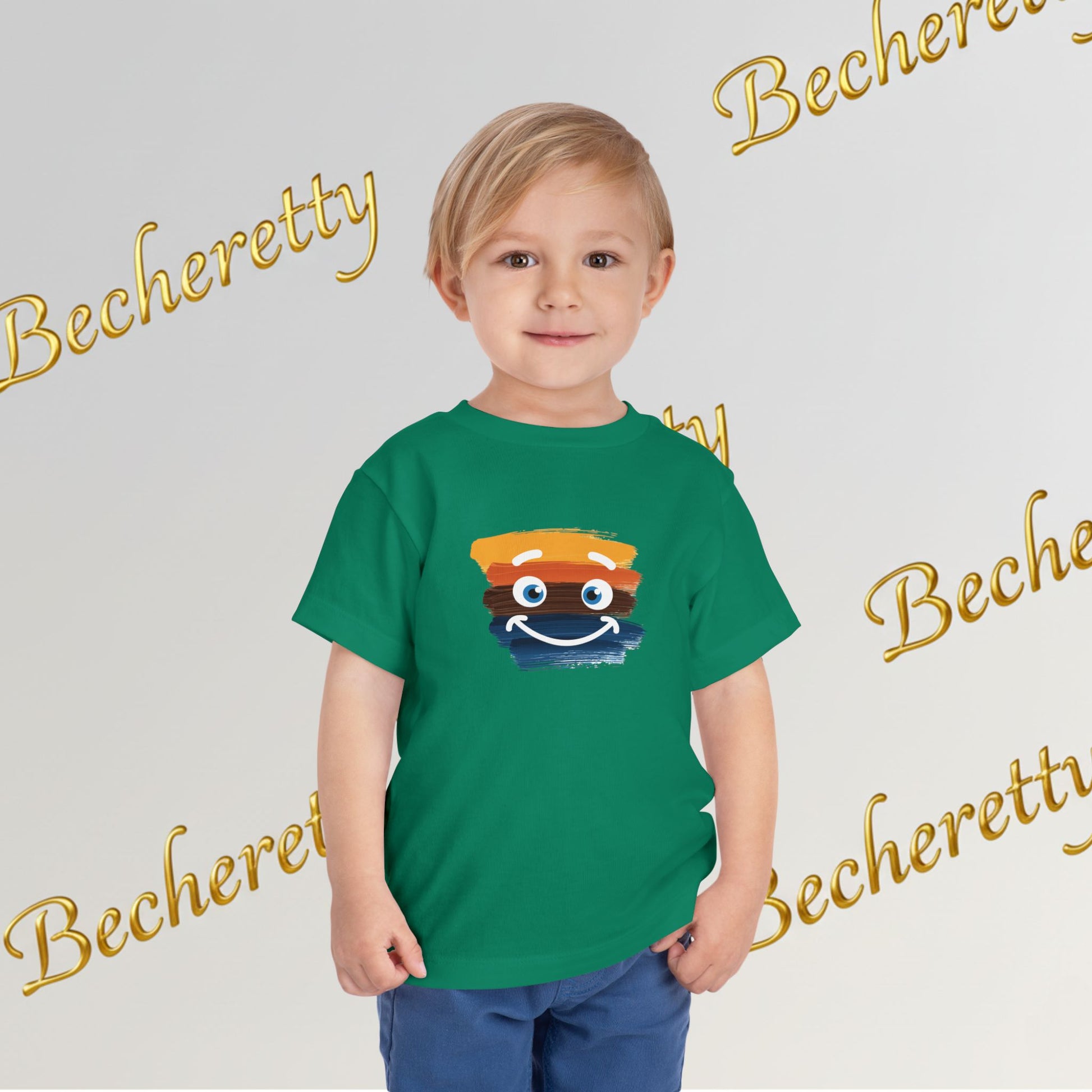 Toddler Tee Smiley Watercolor Art Graphic Minimalist Becheretty - Happy Face Kids T-Shirt